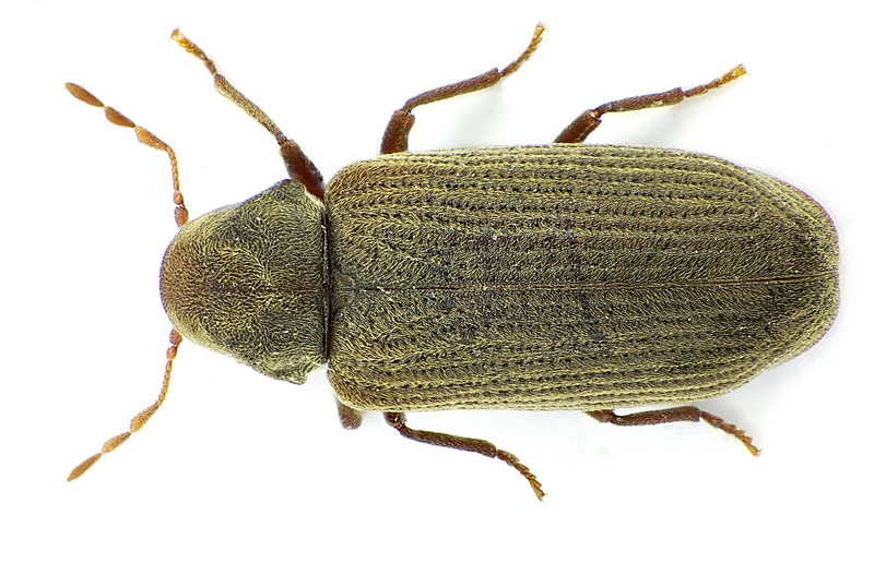 - Le lyctus : cet insecte s’attaque aux meubles, aux menuiseries, aux parquets, aux escaliers. Vous pouvez en retrouver uniquement si vous avez des essences de bois de feuillues comme le frêne, le chêne, le cerisier, l’érable, le peuplier, le charme, etc. ainsi que certains bois venant des tropiques et qui viennent juste d’être transformés. Il est assez facilement identifiable car le lyctus creuse des trous dans le bois pour pouvoir sortir. Ces trous sont soient ronds ou ovales et ils sont d’une très petite taille qui ne dépassent pas 1,5 mm de diamètre. Les lyctus ne font aucun bruit comme les termites. Pour les déceler, il faut regarder la présence de plusieurs insectes morts entre le printemps et la fin de l’été. Le lyctus laisse aussi une fine poussière de bois qui ressemble à de la farine à côté des trous qu’il fait.